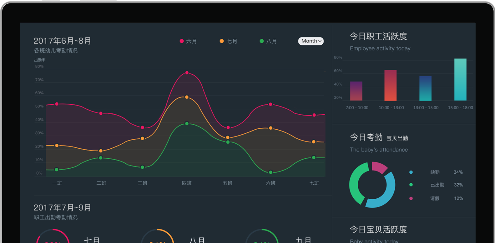 告别手工算账,通过智能硬件自动获取到每一位小朋友的考勤,并通过大数据分析系统自动计算出每一位小朋友详细费用,极大的节省了时间和人力。